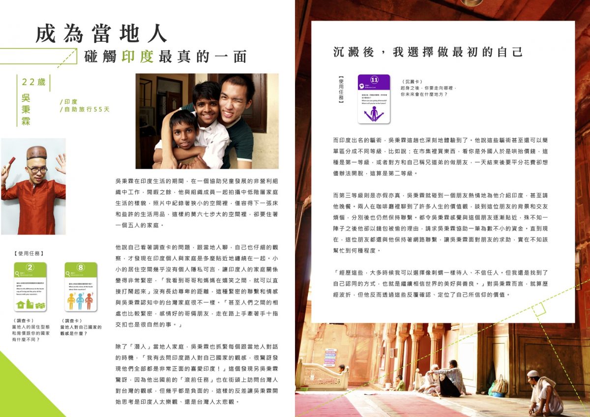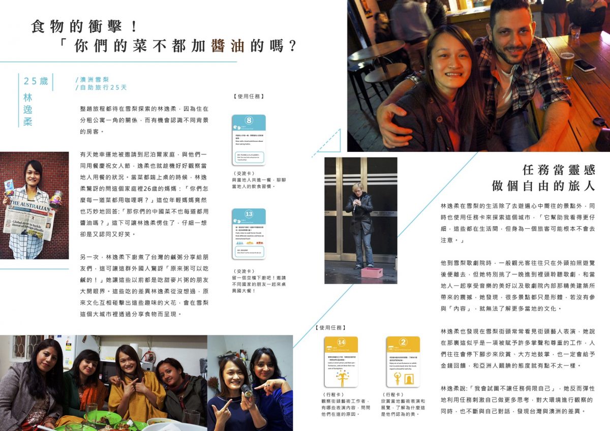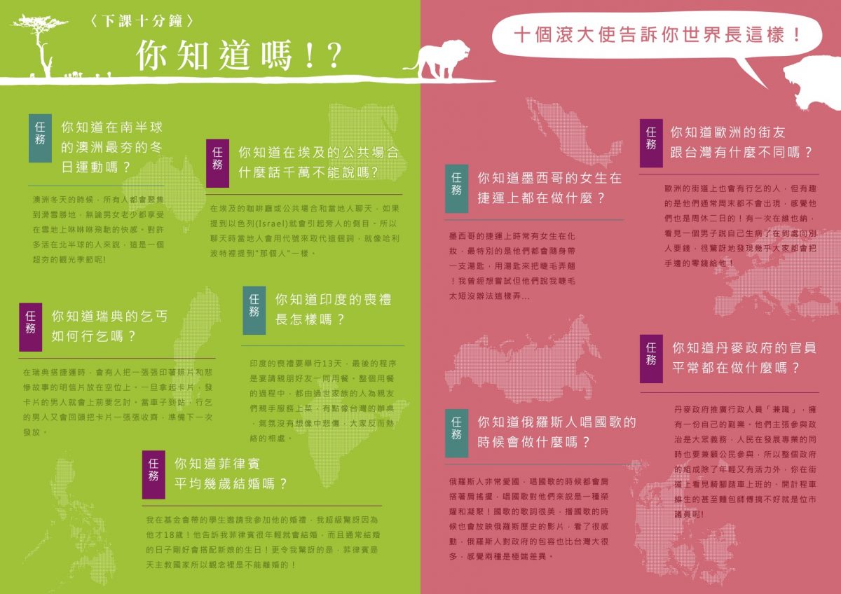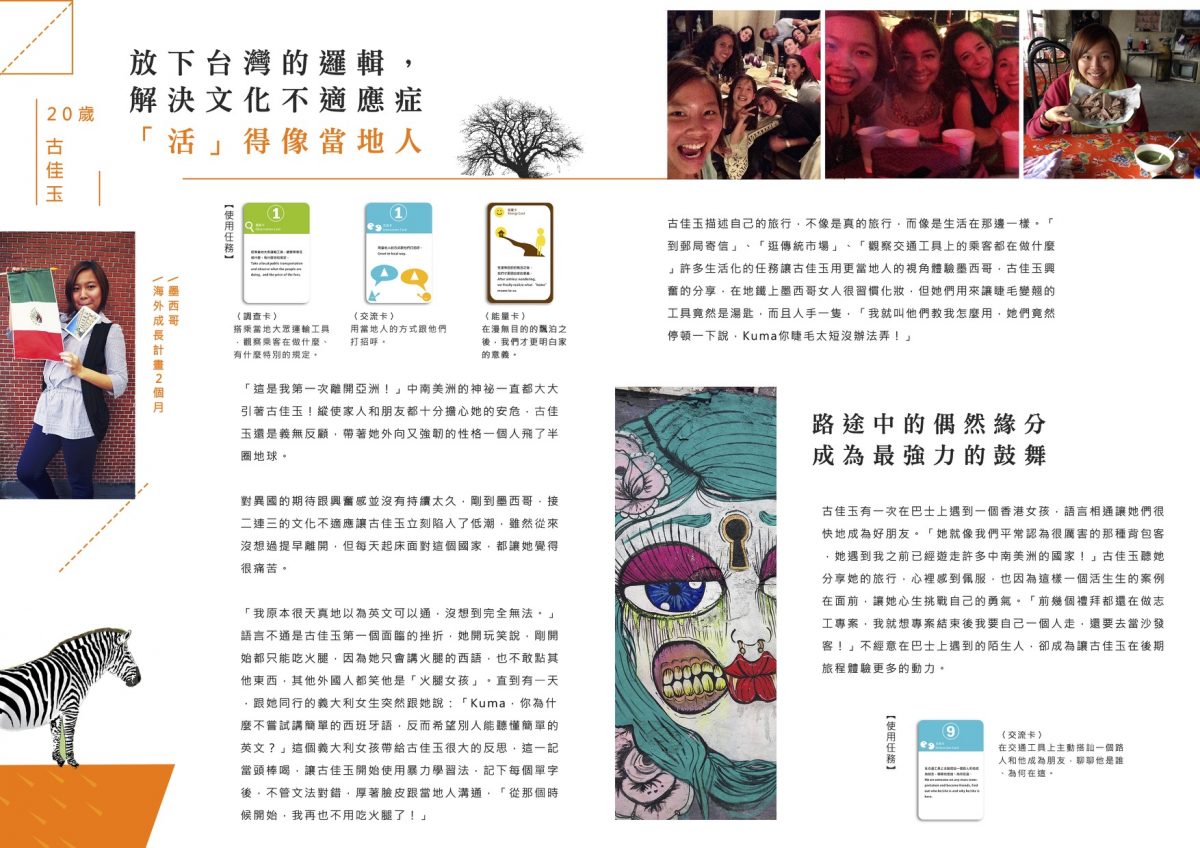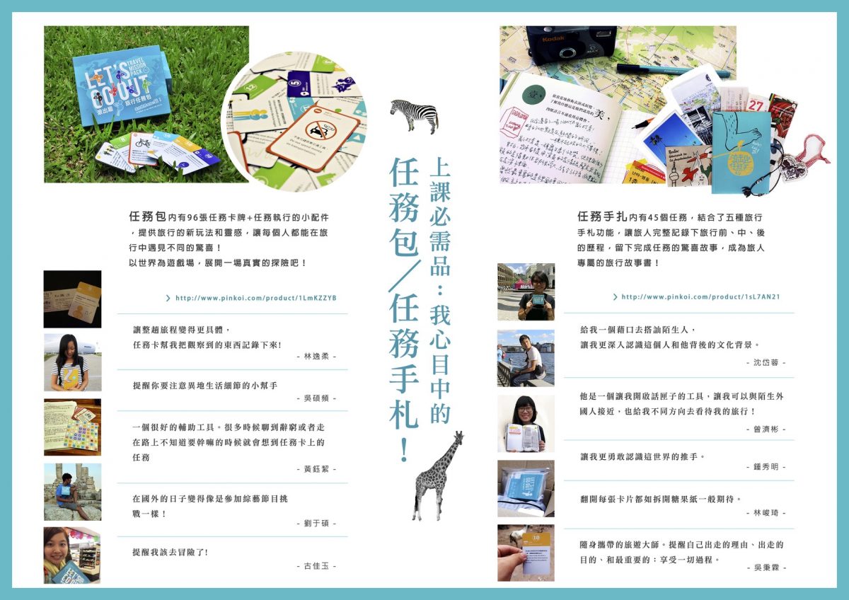 每個滾大使會拿到一包旅行任務卡,在行前會也會一起討論自創任務,在旅行過程中我們也會在社團裡隨機出任務給滾大使。